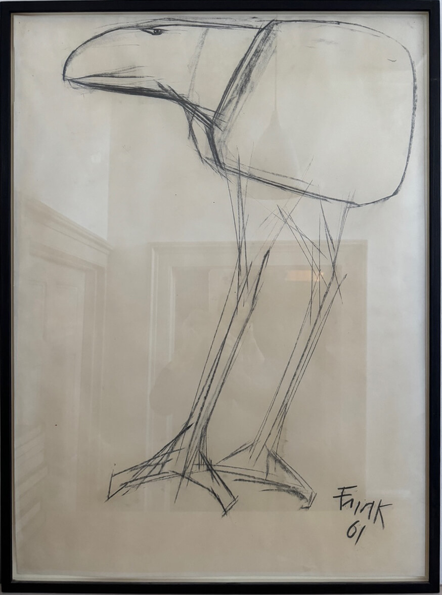 Frink was an extremely accomplished draftsman. She believed drawing was the most important part of an artist’s practice; the foundation of everything one does. She drew quickly and spontaneously, and formed her imagery largely from her imagination, inspired by things she had seen sometimes years before. Although she sketched regularly, producing a great many drawings, most of Frink’s works on paper do not survive – destroyed by the artist. The few that she signed and exhibited represent the most prescient and personally important pieces to her, which she felt worthy of releasing into the world.