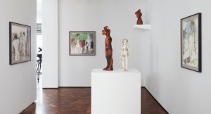 The relationship between Brown’s drawing and her figurative sculpture adds a further layer of dynamism and complexity which has become an important aspect in her work. She has long been interested in the relief as some kind of metaphor for the gaps, the liminal spaces where changes can take place. The sculpture and drawing presented in this exhibition takes that concept further, exploring this intersection between two and three dimensions, an aspect offering new challenges and potential for Brown’s practice.