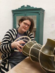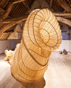 On 23 and 23 June 2024 in the Planet Positive tent at First Light Festival, Messums Creative & artist Julia Lohmann offered free drop-in workshops where they shared their passion for making, science, algae and the environment, demonstrating the materials and fabrication techniques for her seaweed sculptures and the philosophies that can be brought into practice around materials with different use requirements. In the presence of her giant ‘Sea Creature’ constructed entirely from seaweed and wood, participants learnt how they themselves can work with seaweed. They were shown how to make their own seaweed brooch, which they could take away with them at the end of the session.