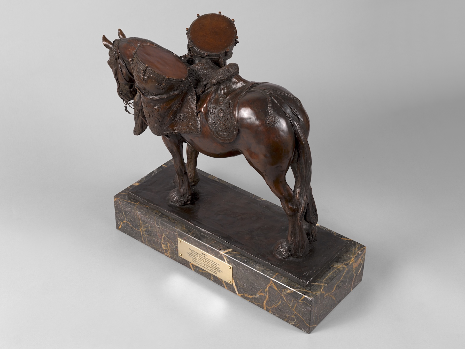 Beyond artistic contributions, Carmichael’s work aims to have a broader social impact, as she has done for charities Waterberg Rhino UK and the Household Cavalry Foundation through sculptures of Tyson the baby rhino and three HCMR horses. Carmichael engages in projects that not only deliver high-quality sculptures but also support educational initiatives, bring communities together, and raise funds for wider causes; she uses her sculpture to drive positive change. Carmichael’s sculptures are created from working from life in her studio in Gloucestershire, and are cast in Basingstoke.
