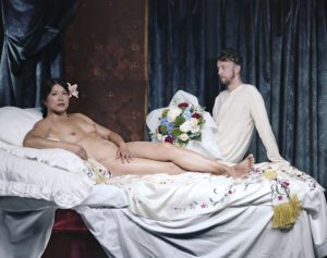 As a woman I always feel uncertain when facing a reclining female nude. Which actual woman would do that? In that rigid position with a smile, permanently covering their pubic hair? As a non-white woman, I wonder which character in Manet’s Olympia I can be associated closer with, the white prostitute, or the black servant? Or both? However, as a photographer, I can relate to Manet’s position better—the person with the authority to narrate. It was with all these questions, doubts, and uncertainties that I decided to re-stage Olympia, as a way to clarify and calibrate.